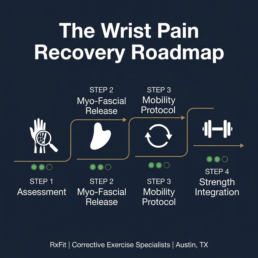 At RxFit, we trace pain to its source and engineer a precision correction — delivered privately to your home in Austin. Book a complimentary movement screen and let’s find out what your wrists are actually trying to tell you.